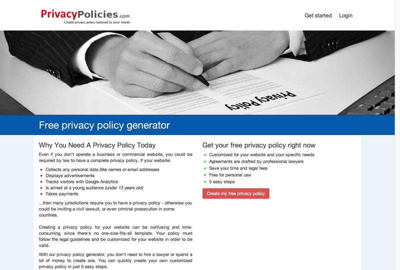 Use our privacy policy generator to create a ccpa, gdpr, and caloppa compliant.