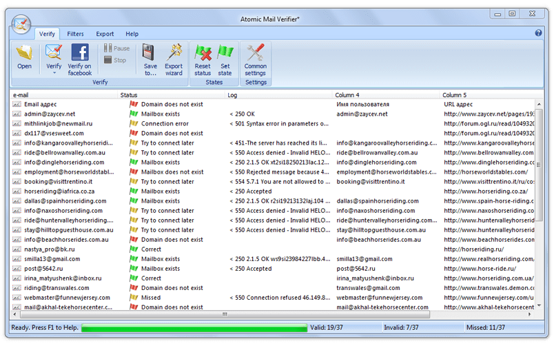 Electronic mail, more commonly referred to as email, is widely used in professional, academic and personal environments as a way for people to communicate with one another. It helps anyone to make proper use of smtp server and maintain a large list . Atomic mail verifier is ready for download, which lets you manage it quickly and directly from your desktop. Email addresses verifier to check email account validation. Email allows individuals to stay connected with one another, even o. Atomic mail verifier latest version: This software can send your mass marketing bulk email to unlimited mailing list. Atomic mail verifier, free and safe download. View free email verification software ; Managing large quantities of email for marketing campaigns is a huge undertaking. Validawy is a free email verification software for windows. Verify millions of email addresses really quickly. Valid email verifier is a kind of software that can verify an email address.