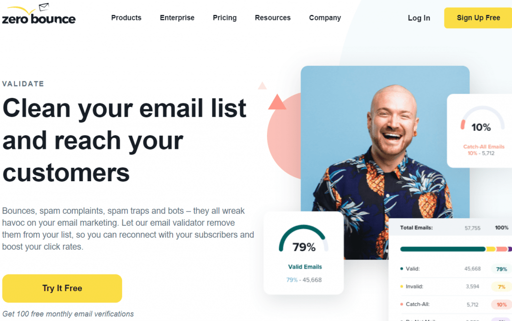 Enterprise grade cloud hosted email verification. Deployed and trusted by 1000's of businesses. Zerobounce is more than an email verifier: Identify correct emails quickly and reliably with smtp verification, typo checking, disposable email lists, . Try our online email validation api for free.