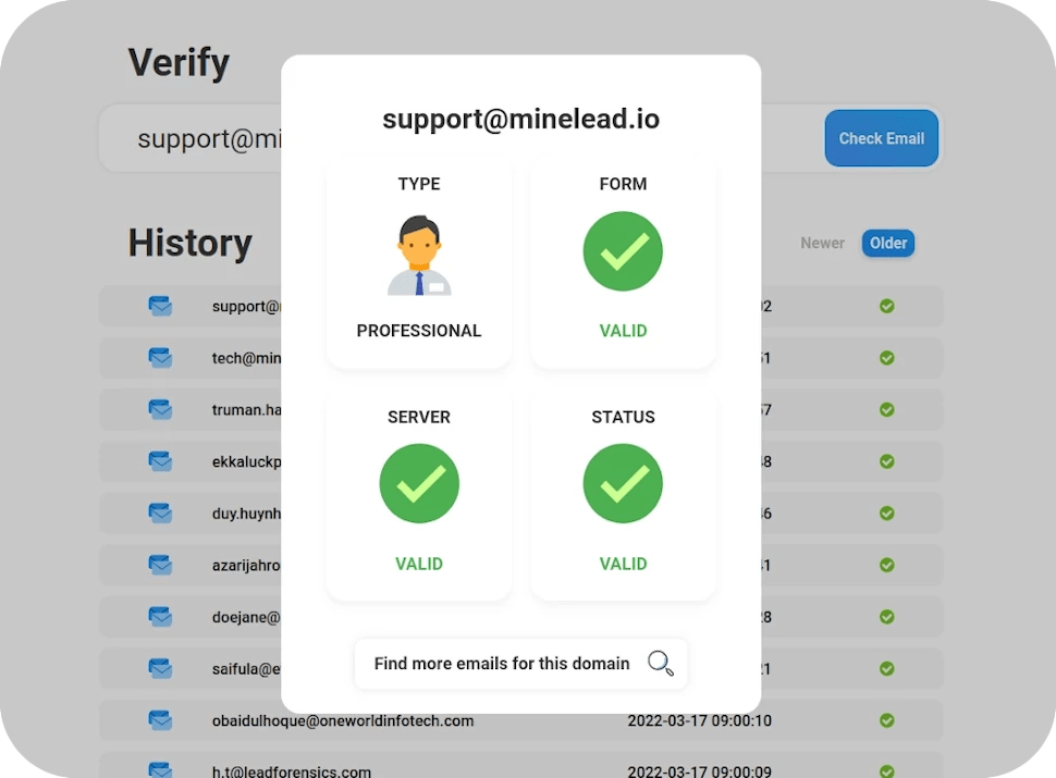 Try our free email lookup tool. We harvest and process millions of public data daily to offer a fast and reliable email finder for. Minelead is a free email finder and domain email finder. Registered in the uk, number 10586048. Install our free email finder chrome plugin.